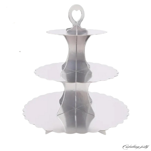 Présentoir à gâteaux sur 3 étages en carton argenté
